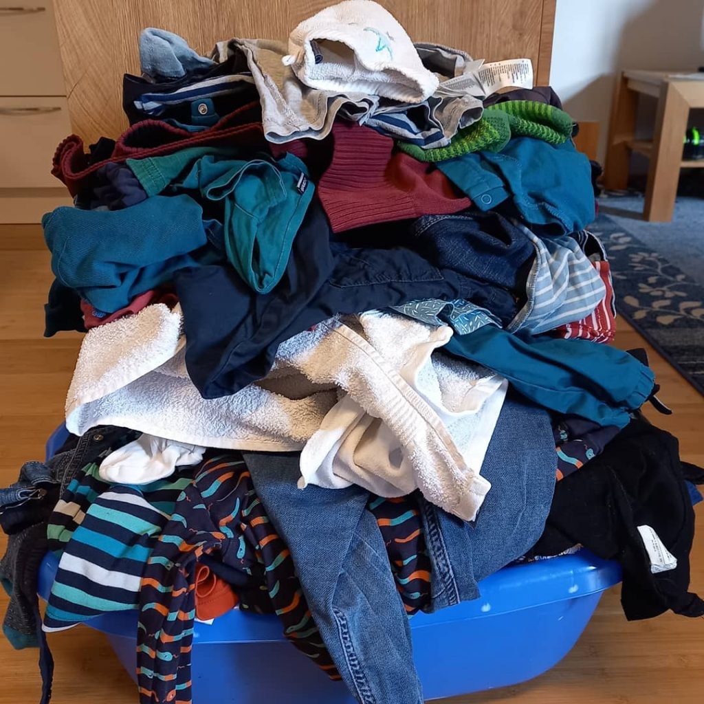 Und dann wartet noch dieser gigantische Wäscheberg auf mich. Den will ich heute auch noch schaffen. Und das ist noch nicht mal alles, im Keller liegt auch noch Wäsche. Hab kurz überlegt sie rauf zu holen, damit das Foto noch eindrucksvoller wird, aber ich hatte Angst um meine Motivation…
